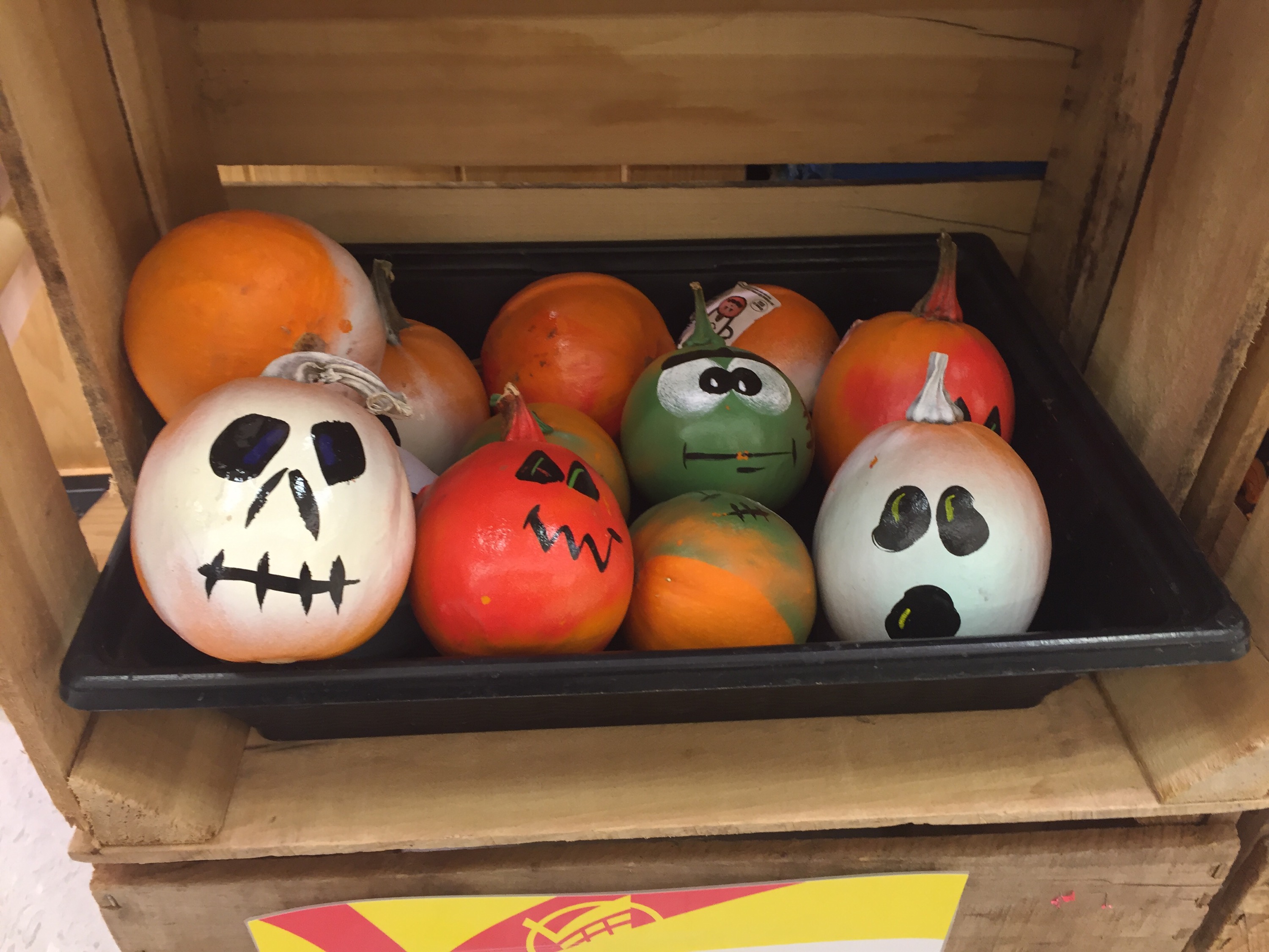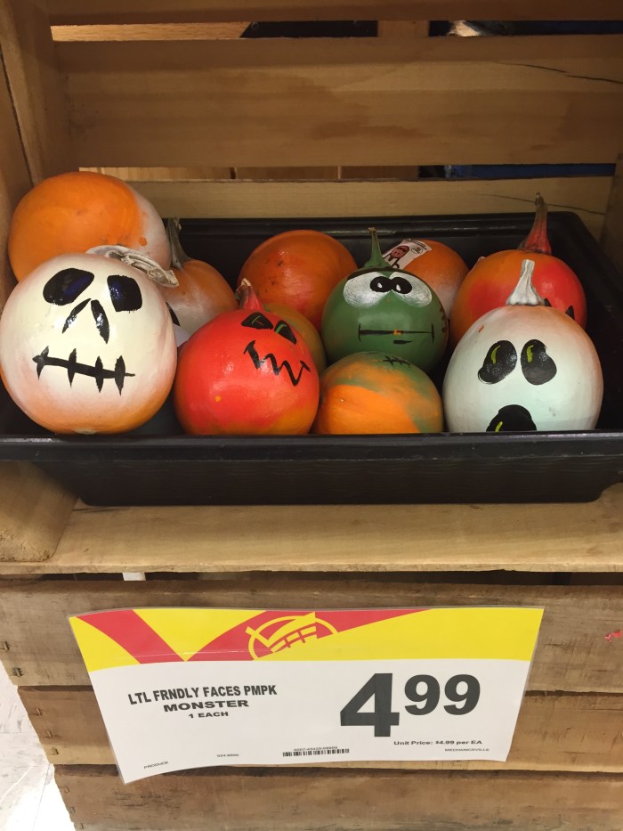 The sign says Friendly Faces Pumpkins . . .
