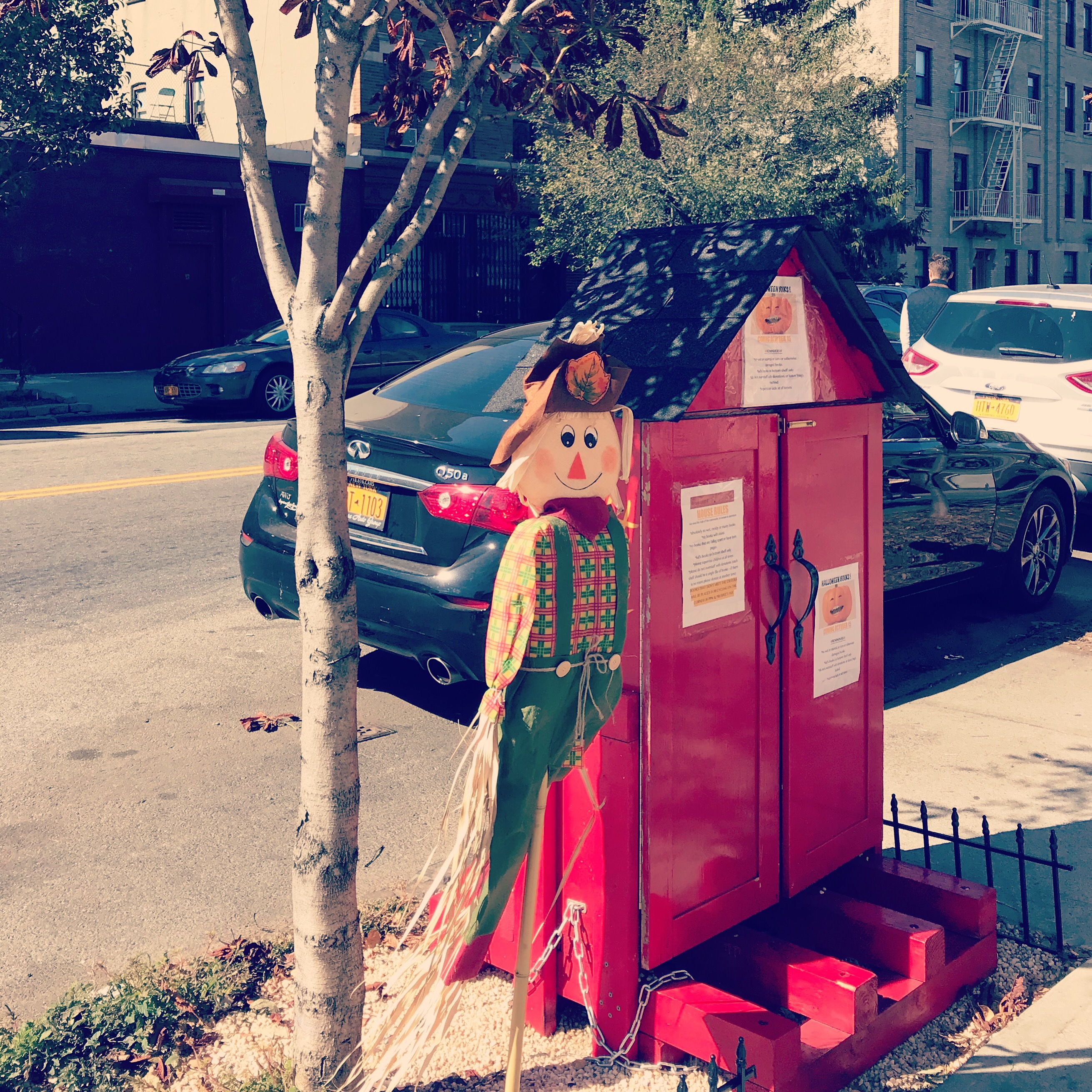 October 5, 2017 by A Little Bit Funny autumn, Brooklyn, fall, Halloween, leaves, NYC, scarecrow