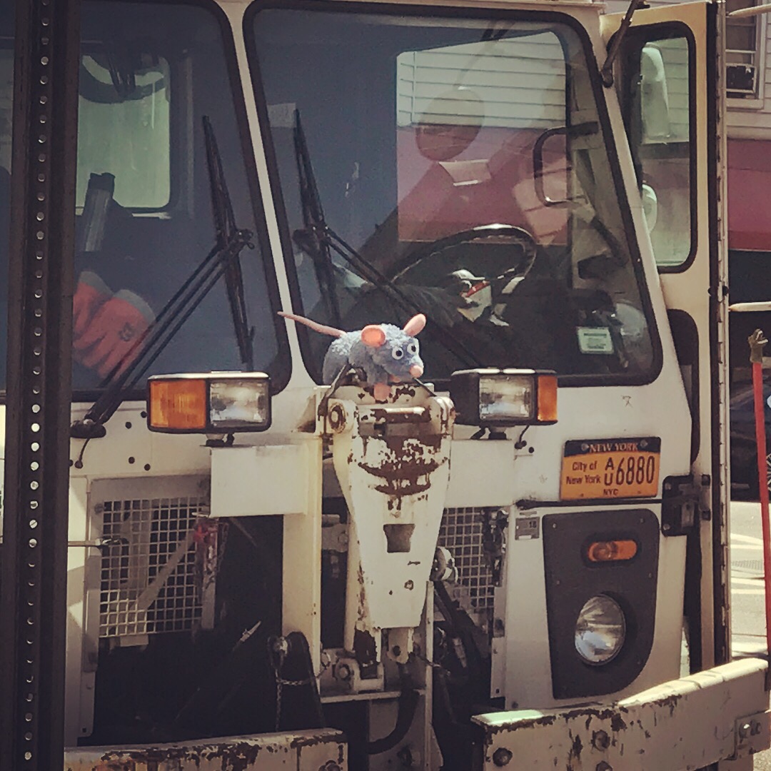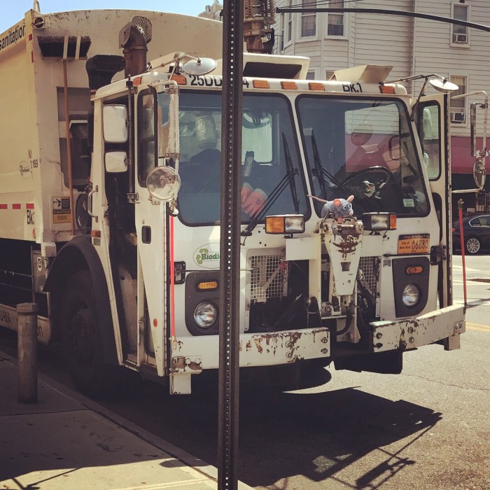 October 18, 2017 by A Little Bit Funny Brooklyn, funny signs, garbage truck, NYC, ratatouille, rats