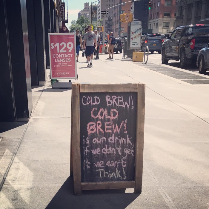 May 1, 2018 by A Little Bit Funny coffee, cold brew, drinks, food, foodie, funny signs, NYC